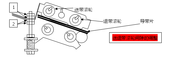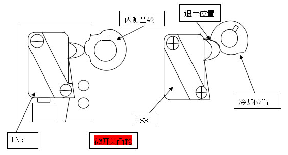 狀況二:不自動出帶,遇到此情形時,首先檢查“出帶長度調整”是否在“0”處,然后在看穿帶過程是否正確,如果不行,則參考(下圖),LS5如在歸零狀態下,按點未能碰觸凸輪,則往內調些即可,另外送帶滾輪附近卡住異物,亦造成此一情況。