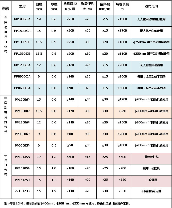 原材料完全采用全新純聚丙稀材料(無再生料)。產品機械物理性能穩定,每米克重均勻,帶子寬窄及帶子厚薄穩定;整體使用性能提高。