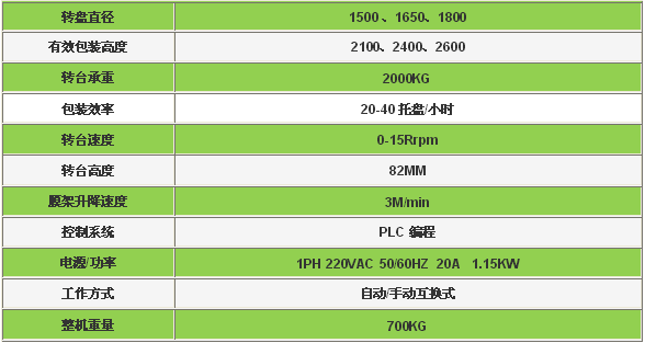 ♦自動運行,設備按預設程序自動纏膜;自動感測貨物高度,轉臺自動復位。同時可選擇手動纏繞膜式。
